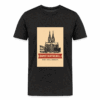 Der ikonische Druck zeigt den Kölner Dom und die Hohenzollernbrücke in klassischer Holzschnitt-Ästhetik – kombiniert mit dem starken Leitspruch: